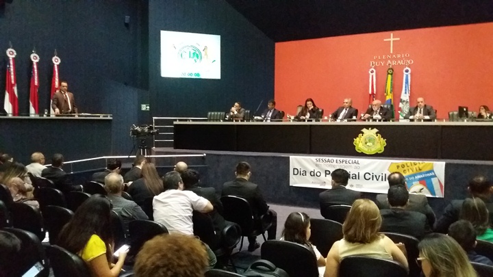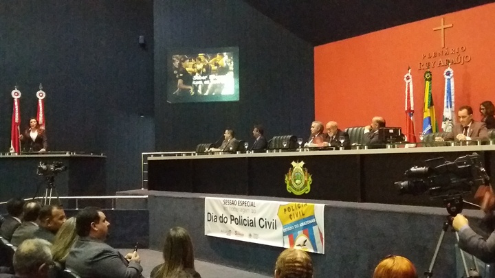 Na última quinta-feira (4), foi realizada no Plenário Ruy Araújo da Assembleia Legislativa do Amazonas (Aleam), uma Sessão Especial em homenagem ao Dia do Policial Civil, que todos os anos é celebrado no dia 21 de abril. A homenagem que foi de iniciativa dos deputados Alessandra Campêlo (PMDB) e Sinésio Campos (PT) e uma maneira encontrada de reconhecer os serviços prestados da Polícia Civil à população.